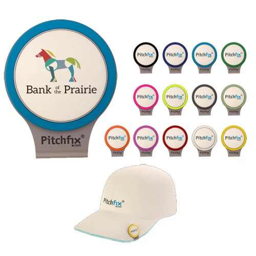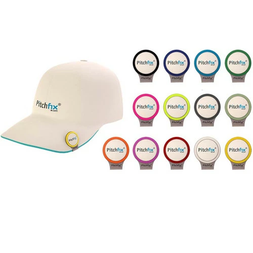 The Pitchfix hat clip is made from strong, thin, anti-scratch and anti-rust stainless steel and is light-weight. The top side is made from Rubberized ABS plastic with a soft feel. Mix and match colors, minimum ten per color.