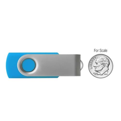 Known as the MVP, the iClick USB drive is a workhorse of-a-different color (24 to be exact, with the option of silver, matte black, gold or white swivels) and can be done with a full-color imprint, data-loaded and shipped in 24 hours. It has no minimum order quantity and a 24 hour turnaround with no rush fees. Measures 2.25” x 0.8” x 0.4” in size and comes standard in Security Sealed, Recyclable Packaging. (4GB)
