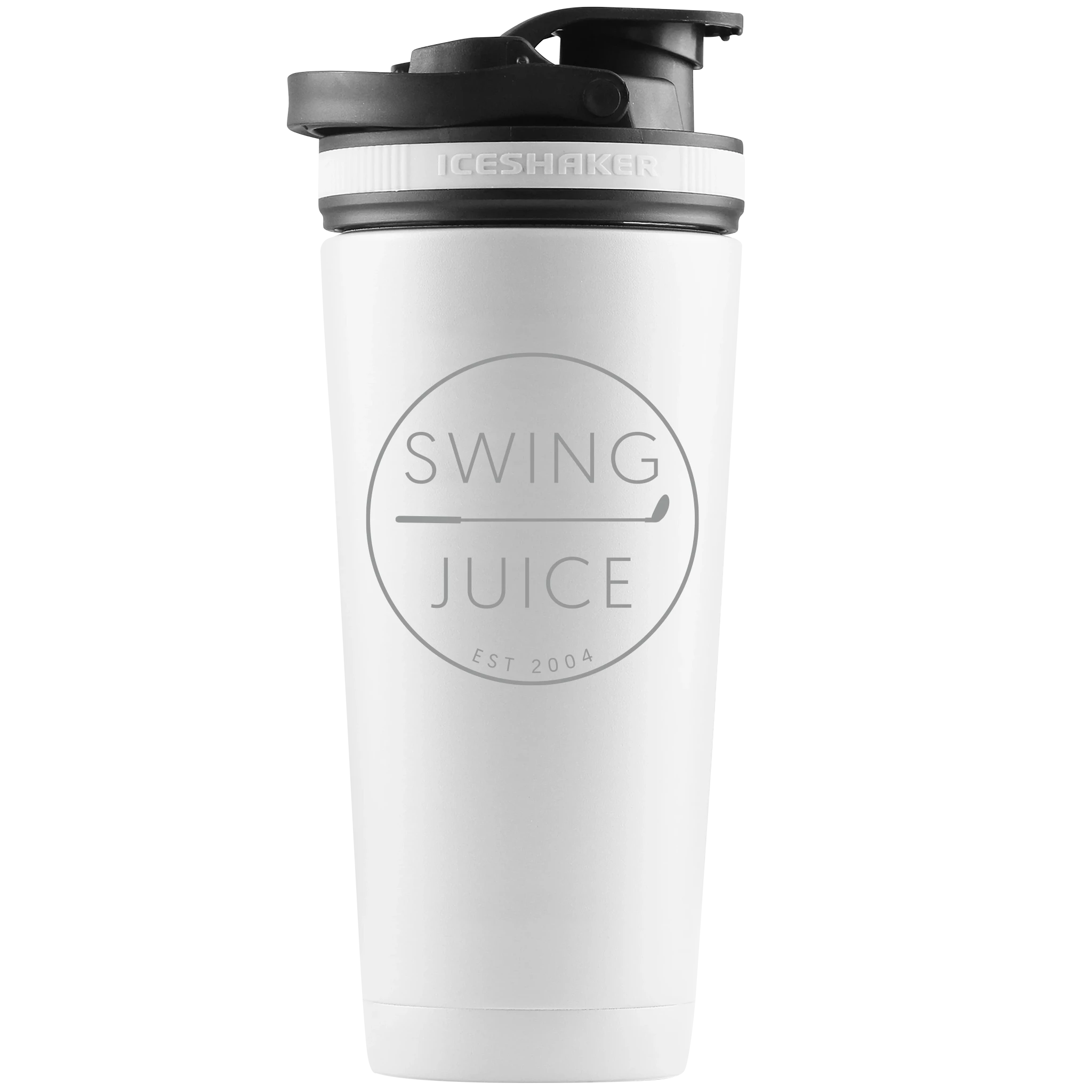 Coming to you from The Gronkowski Brothers and launched via Shark Tank, SwingJuice now offers The Ice Shaker Bottle with all the logo offerings you love! It’s the perfect bottle for everything, especially for the golf course. Fits precisely in golf cart cup holders and shakes up the perfect cocktail for your round. The Ice Shaker is spill proof, easy to carry, and vacuum insulated so your drink will stay cold for 30 hours, just in case you drink really slow. The bottle is also stainless steel and odor free. Transitions to the gym for protein shakes and so much more.